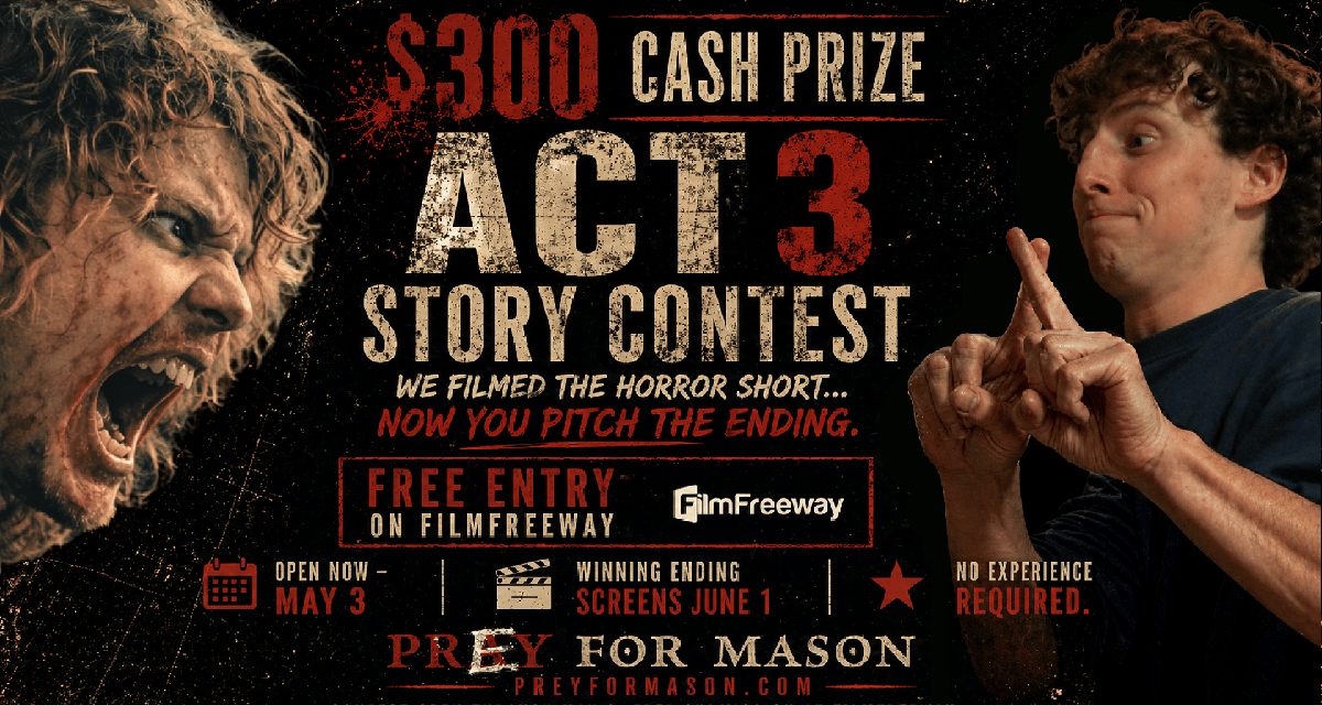 In an audience-gamification experiment, Eyre Films offers a $300 cash prize for a winning Act 3 story idea to complete a proof of concept for Prey for Mason. The team plans to shoot the new ending, that will better tie into the theme of “Love your enemy,” in time to screen on June 1, 2026.
